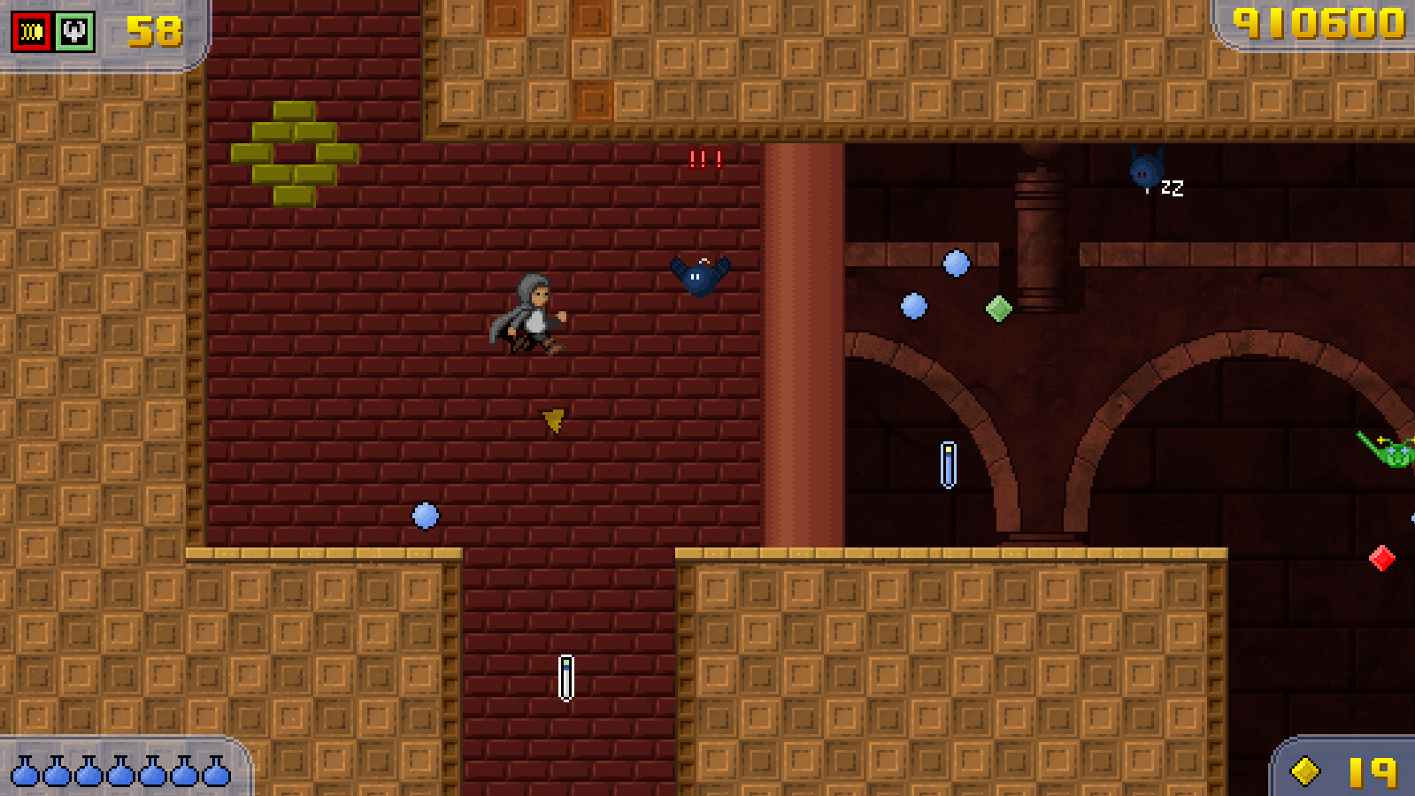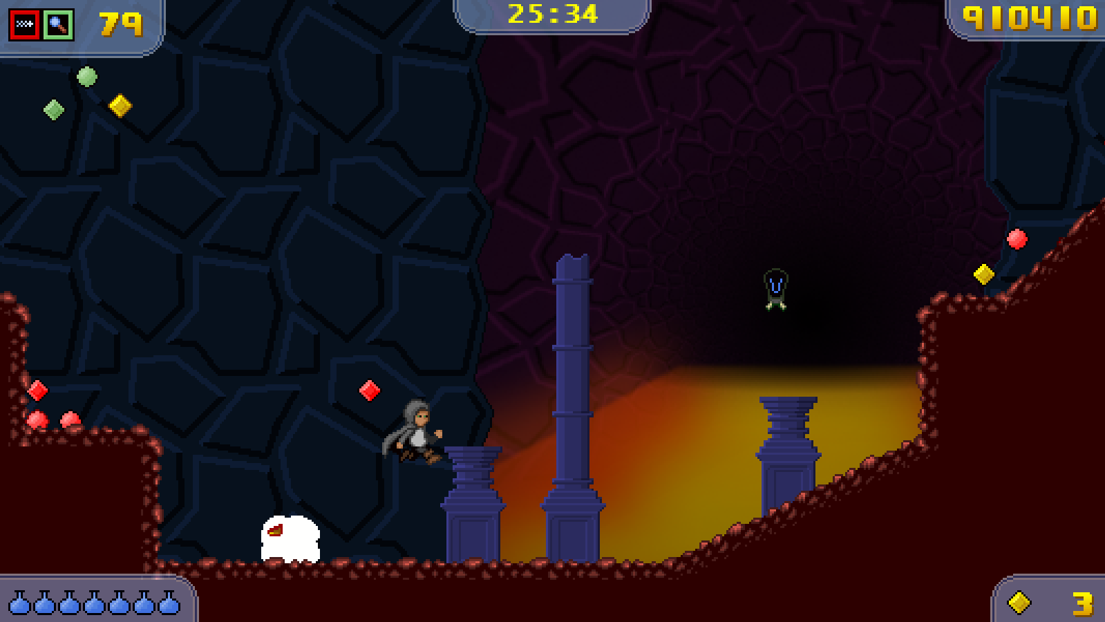Crystal Towers 2 is full of programmer art. I was really fortunate to get to work with graphics artist J Freude who drew Bernard and a lot of the game's enemies, and several other artists contributed to the game, but for the most part I was on my own - and that led to a lot of corners being cut in the graphics department. In fact, the Magma Lizard boss had a background that was a crudely-drawn mountain shape and gradient that I forgot to replace before I released the game. ![]() (I admit the rest of the Magma Falls backgrounds weren't a whole lot better.) Adapting the game to a 16:9 screen has made me have to revisit a lot of backgrounds that were designed for 4:3, and I've taken the chance to touch up a lot of the graphics that were lacking before. My artwork skills have (marginally) improved from a few years ago, and so some of the levels have been given big makeovers - Magma Falls and Grassland Ruin now have completely new tilesets and look much more like I was imagining them to the first time around. ![]() ![]() I think there are only three or four more of these backgrounds to do, now - I'm giving the game a long test play, improving the rusty parts as I go. There have also been a few gameplay adjustments in the interest of smoothness, which I'll talk about soon! 2015-07-01 21:19:00 Comment on this entry |