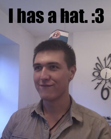 This one's Australian best friend. Beanpole-thin, genius-history buff, anime/video game dork, wears ridiculously awesome hats (example: a rainbow beanie, a purple hat like something Willy Wonka would wear) LOVES Pokemon and Doctor Who and amazingly enough has a girlfriend who's practically a female version of him who dresses like Tom Baker and is equally Adorkable. Eee. <3