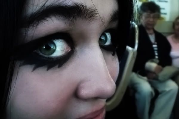 I honestly have no idea what color my eyes are any more. Normallly they look big and brown and Bambi-ish, but other times they look more black than anything, other times they seem kind of hazel-ish, and once I glanced into the mirror to discover they had taken on a deep copper-y, almost red color that almost made me jump out of my skin. It probably has something to do with blood pressure, seeing as they're all variations of what is essentially the same color, but it still weirds me out a lot.