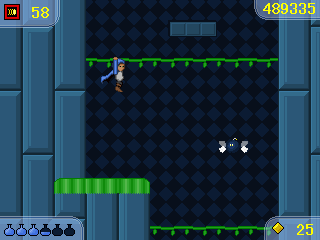 | And this is another (slightly plain) screenshot of another new level. This one introduces vines that you can cling on to - usefully for me, this whole mechanic is an optical illusion applied to an existing one, because they're just invisible platforms, with visible vines overhead, that the player has a different animation on when he's walking across. And the added ability to drop down from them as well as jump up. |