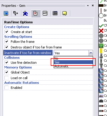 I had a look at that after noticing that a level that I'd sat on without quite completing for ages slowed down drastically after I scattered collectible gems throughout. Disabling their collisions when they're not near the game window doesn't have an impact on gameplay because you're always on the screen when you hit one, but it's made performance leap from a snail's pace on some of the more complex levels back to completely normal and fast again. It's just slightly annoying that I discovered this only after a whole lot of other performance-related effort.