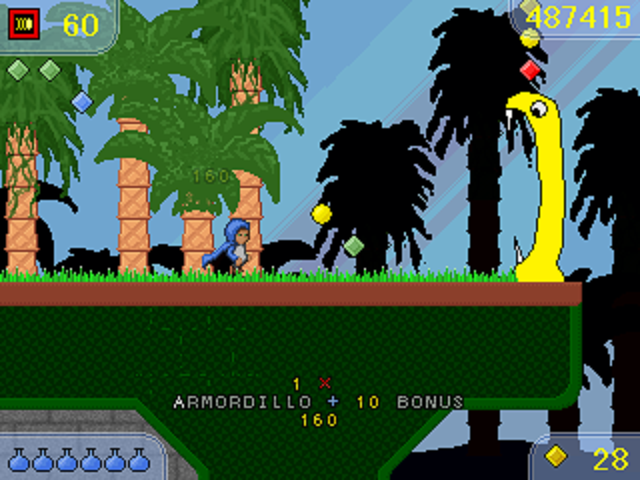 | Getting a good level by saving a bad one from oblivion is a wonderful feeling. After having a couple of them lying around unloved for ages, it's surprising what a bit of graphical effort can do. This one still needs a bit of work done to it (on that blob creature, specifically), but it's already looking much better than the shabby state it was in when I last released this to testers. |