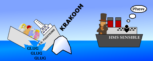 Great; typical - you wait ages for a bus, and when it comes it's on fire. After a long and torturous deliberation process, the client we had been talking to at work decided to go with a different company to build their large (and to us, pretty vital) project. This doesn't leave us immediately bankrupt, as there are projects coming in here and there to tide us over, but things are looking bad enough in April for us to take half the month off before picking work back up again. We have enough work until August if everything else works out, and after that, things are uncertain. But I have a way out - on Monday morning, I received a job offer from the interviews that I was attending in March. With a way into a much more stable and sensible position right in front of me, it might be time to take the opportunity to get out, even though I don't want to do it, for that chance that things might still work out all right and I could keep the extraordinary level of comfort that I have at my current job. Actually, I'll diagrammatize it for you - look at this. ![]() I am currently extremely comfortable, but we're heading pretty swiftly into an iceberg field. I have this opportunity to step off on to safety, whereupon this seems to be the most likely outcome: ![]() But there's always the chance that this will happen instead. ![]() I'm sorry to do this to you, but... here are the lists. Why I should move to the new job Likelihood of disintegration of current job The company is growing - it's based on correcting flaws in the American healthcare market, and will therefore have enough work for at least the next three centuries My current company might actually have a greater chance of survival without a third salary to pay for the time being Not having to deal with this specimen 16% more pay a year from the outset It's physically closer I'd get a new laptop to replace the increasingly decrepit work laptop provided by my existing employment Why I should stay working at my current job I really want to keep working with the people I've got to know over the last four years, rather than being thrown into a new working environment with people I don't know I know what I'm doing there - I'd be going into a new environment and learning new practices and systems all over again I actually quite enjoy dealing with the stupid IT department, as it makes me look like I know what I'm doing It's not that close, but I don't actually have to turn up if I can't be bothered Probably have to devote a weekend to clearing said work laptop of any incriminating evidence Help. 2011-03-30 12:09:00 14 comments |